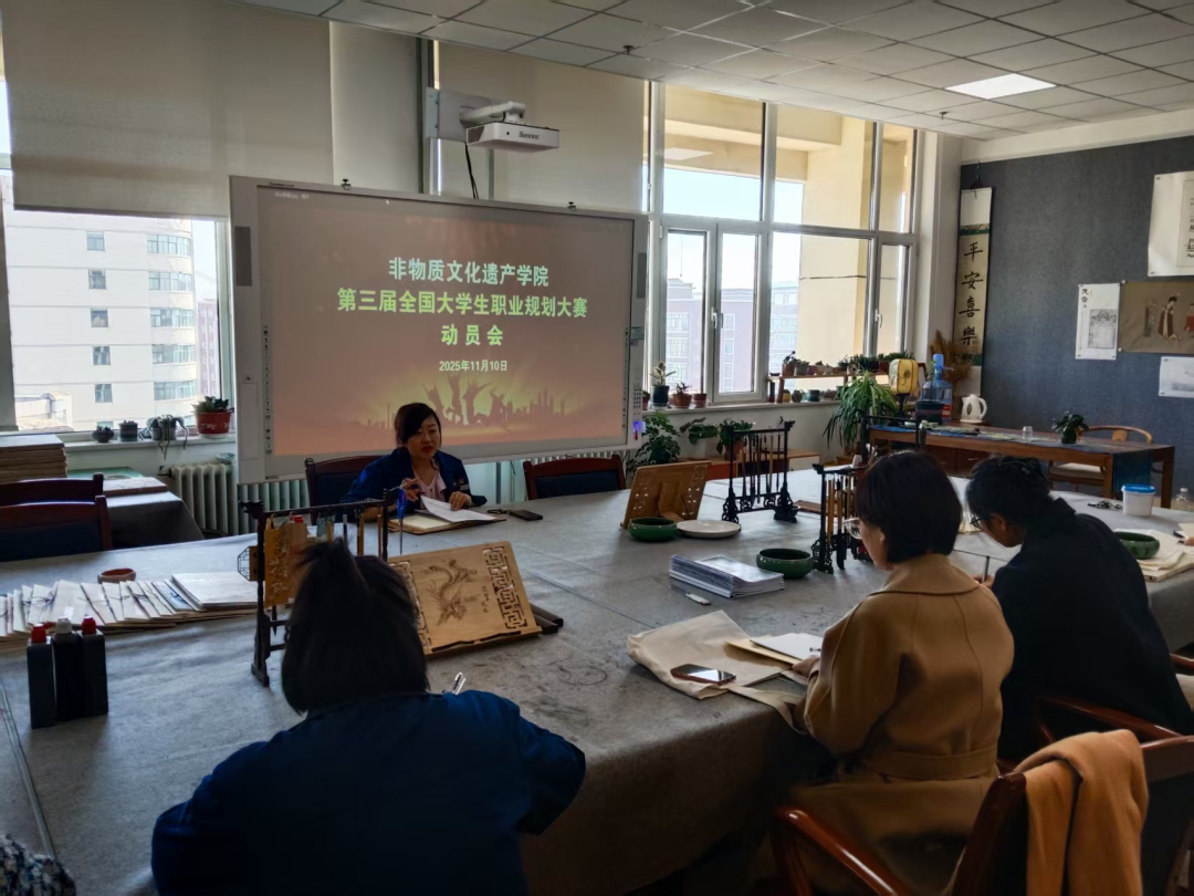11月27日,非物质文化遗产学院召开第三届全国大学生职业规划大赛动员会。副院长李雅敏主持会议,23、24、25级全体辅导员参会。