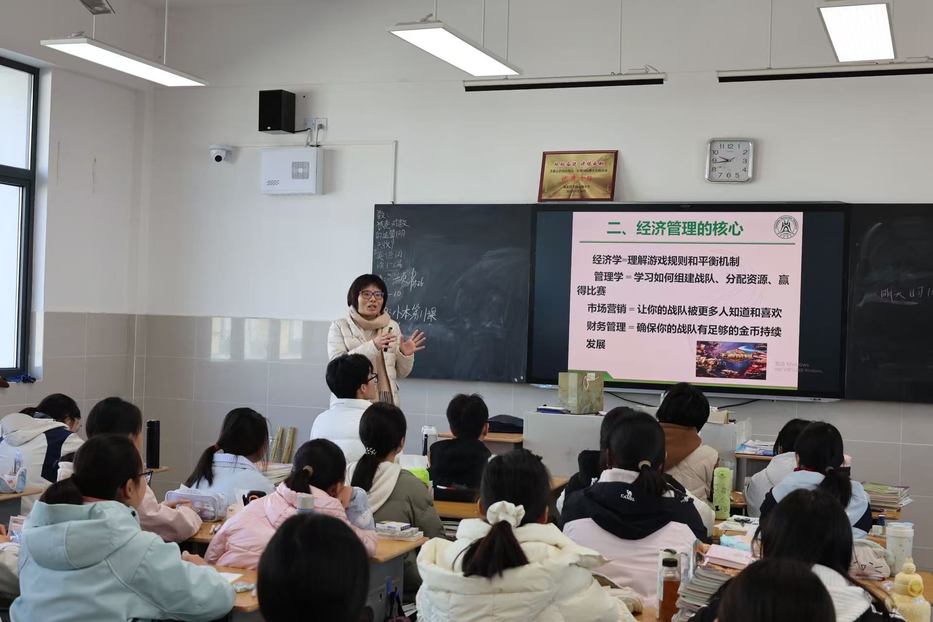 在高一(10)班的课堂上,唐梅老师以“有限零花钱如何满足多元需求”等贴近生活的议题为切入点,迅速激活课堂氛围。同学们在深度探讨中,逐步理解“决策理性”“市场营销”等经管核心概念。为破解“资源配置”“财富增值”等专业壁垒,唐老师创新设计“彩色砝码市场交易”模拟体验活动。活动中,同学们手持等额初始砝码与资金,需在规定时间内通过市场交易实现资产增值。课堂上,同学们各展其长,探索交易规则下的不同操作策略。体验结束后,唐梅老师借助“财富值计算表”进行复盘总结,提醒同学们既要把握“机会”,也要学会控制“风险”。