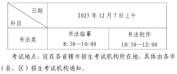考试时间:从2026年1月上旬开始分批进行,考生应于2025年12月20日8:00至12月22日18:00登录河南省教育考试院网站(https://www.haeea.cn),通过“河南省普通高校招生艺术类、体育类专业省级统考网上预约入口”预约具体考试时间。约考时间一经确认,不能修改。