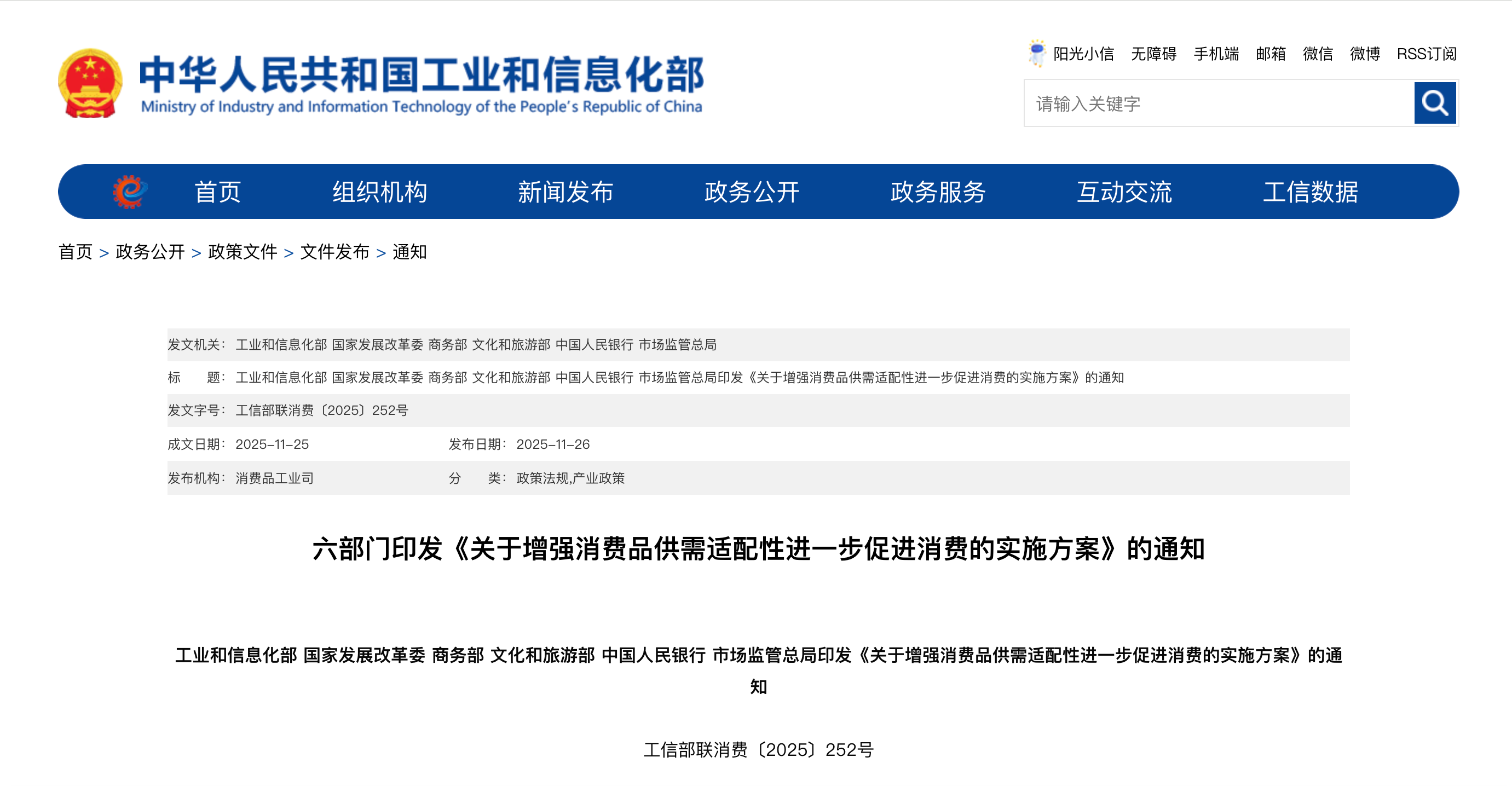 近日,工业和信息化部联合国家发展改革委、商务部等六部门,正式印发《关于增强消费品供需适配性进一步促进消费的实施方案》,为我国消费品产业发展划定清晰蓝图。方案明确提出,到2027年将培育形成3个万亿级消费领域和10个千亿级消费热点,一批兼具文化内涵与全球竞争力的高品质消费品将加速走向市场。