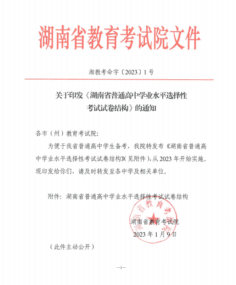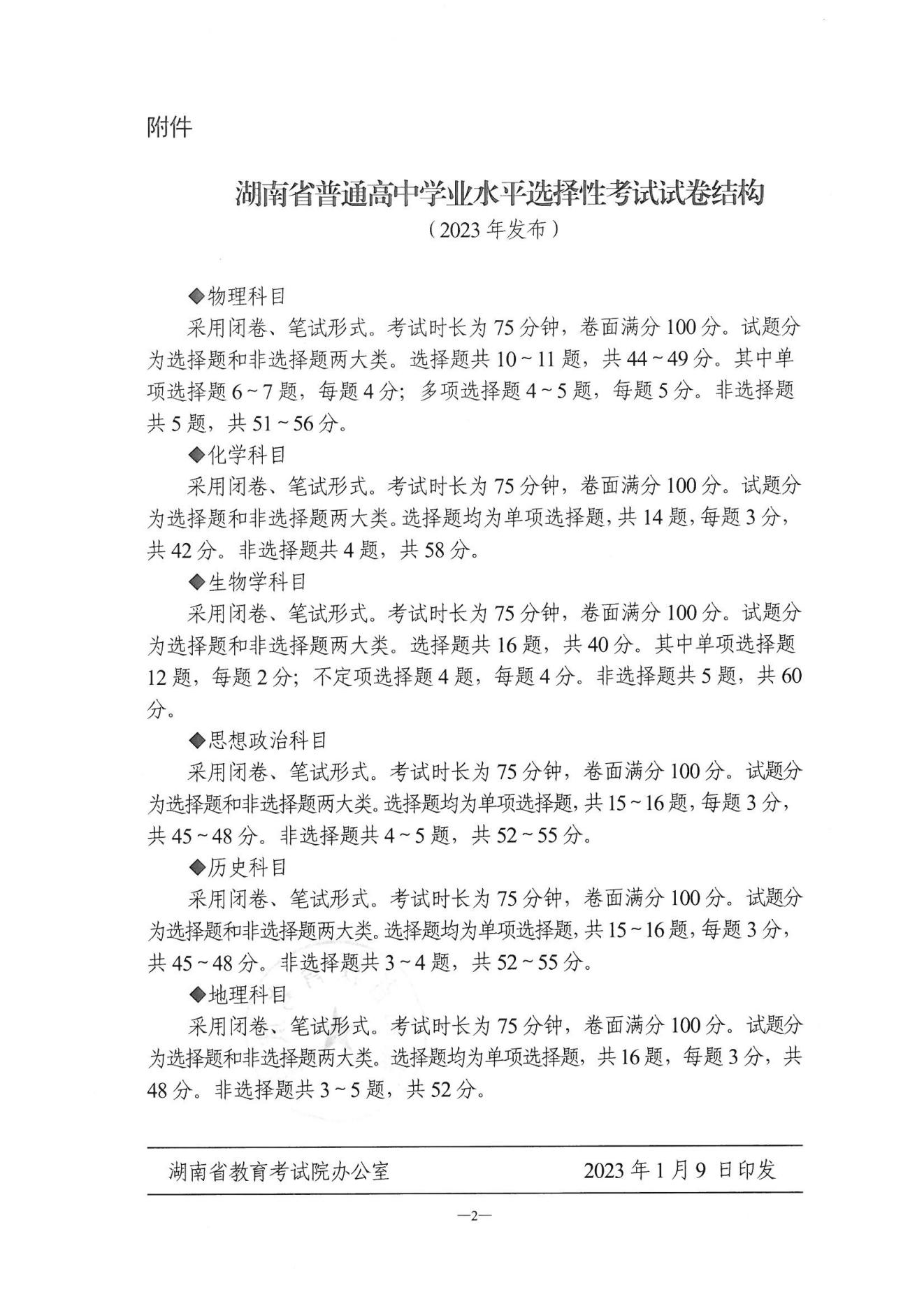 关于印发《湖南省普通高中学业水平选择性考试试卷结构》的通知