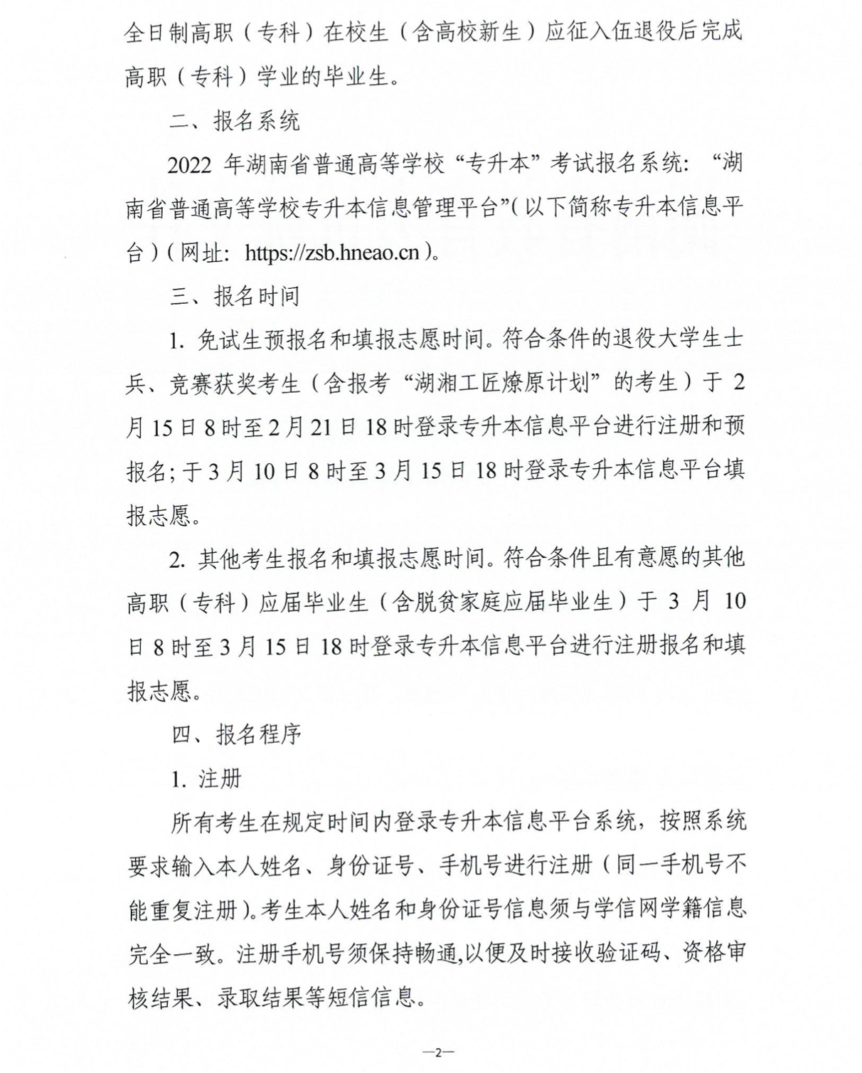 关于做好2022年湖南省普通高等学校“专升本”考试招生报名工作的通知