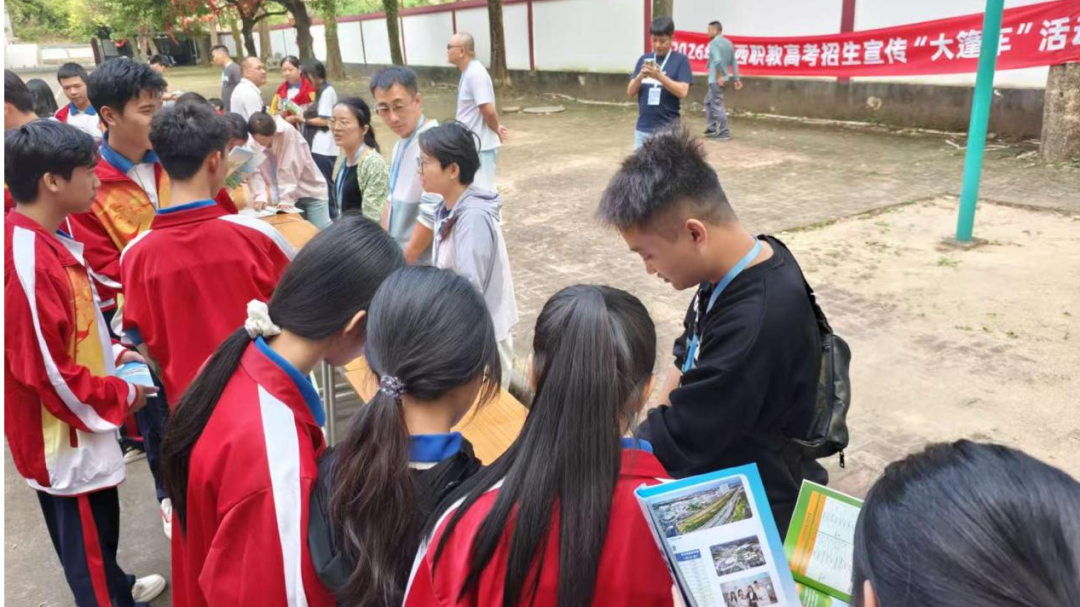 10月26日—11月1日,由广西高校招生研究会高职高专招生分会联合组织的 2026 年职教高考招生宣传 “大篷车” 活动正式启动。我校高度重视此次招生宣传工作,精心选派骨干力量组成宣讲团队,由副校长肖新宇、招生办公室副处长覃永峰带领我校许乐、罗洪昌、徐云教师分别赴南宁、桂林、北海、防城港、钦州、来宾等地市,深入多所中职、高中校园,为莘莘学子送上政策解读与升学指导,切实打通职教高考资讯传递的 “最后一公里”。