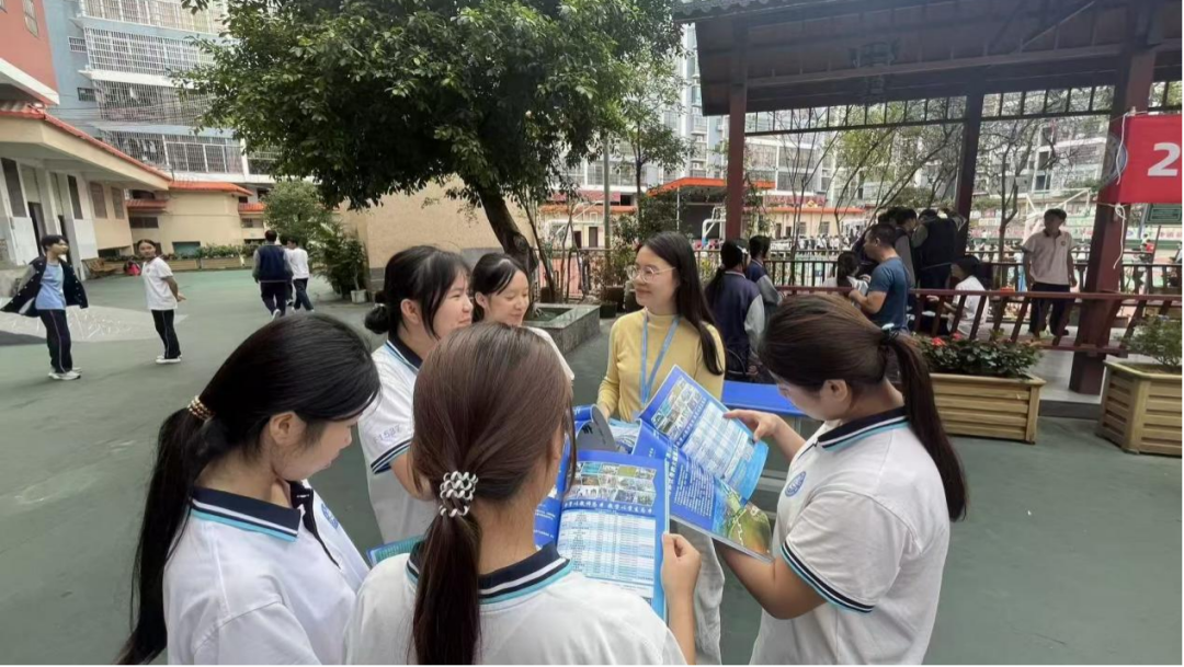 宣传老师们通过设立招生咨询台、悬挂主题横幅、发放招生宣传简章等方式,聚焦考生最关切的招生政策、报考流程、专业优势及就业前景。从报名时间节点、志愿填报规范、考核内容权重等考生关注的核心问题展开解读,用数据对比分析不同专业大类的升学优势,帮助学子建立清晰的备考认知。