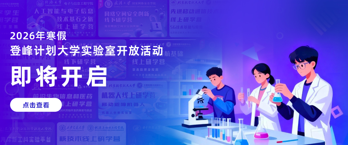 为全面贯彻党的二十大精神、二十届三中、四中全会精神和全国教育大会精神,落实教育部等十八部门《关于加强新时代中小学科学教育工作的意见》的文件精神,让中学生能够提前走进大学实验室,参与科研实践,认知大学专业,提升创新实践能力,弘扬科学家精神。2026年寒假,同济大学和登峰平台将于2月中旬组织开展大学实验室开放活动,诚邀全国各中学高中生踊跃参与。