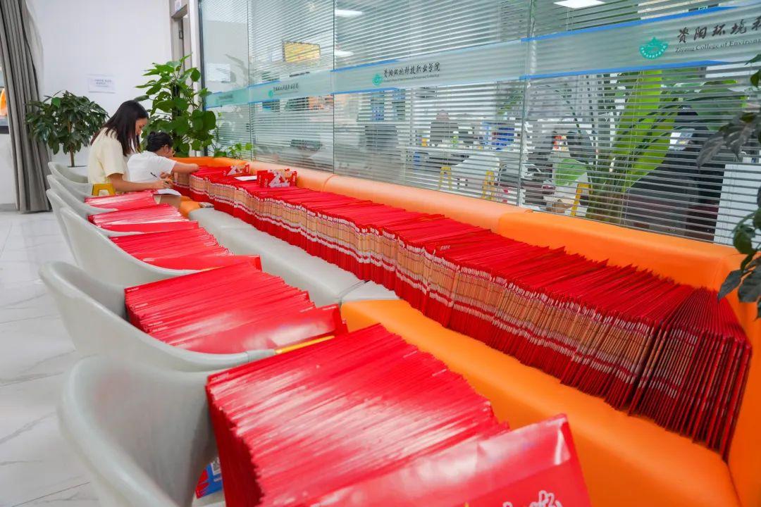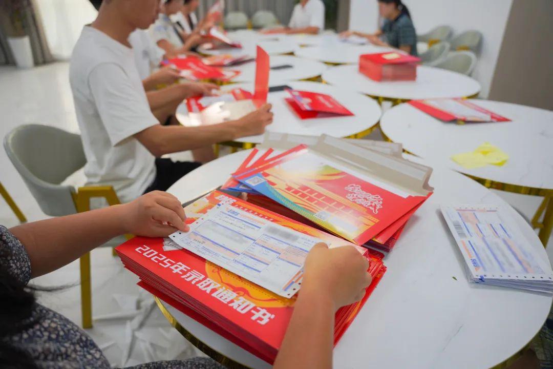 工作人员满怀热情为新生封装录取通知书▲