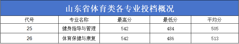 一、体育类各专业投档概况