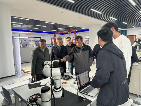 交流期间黄晖副院长陪同林俊一行参观学院教学实训基地。