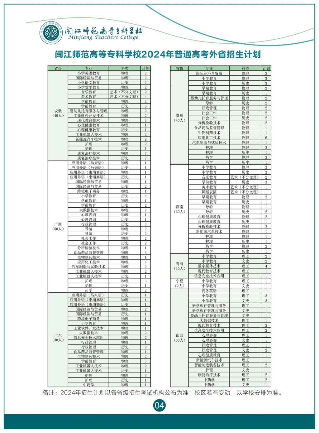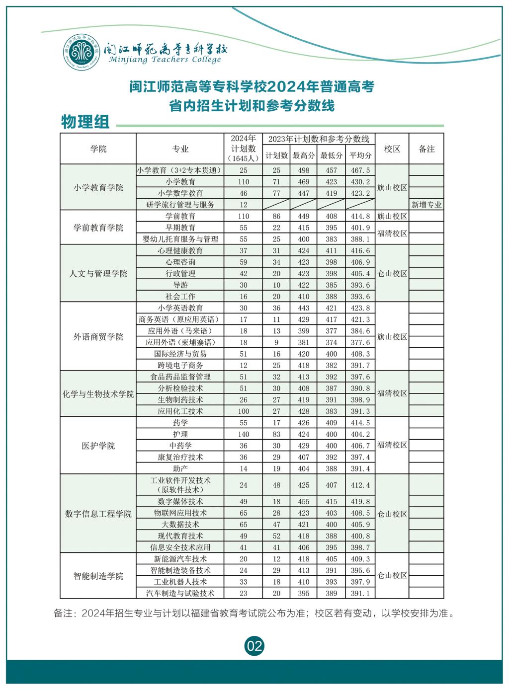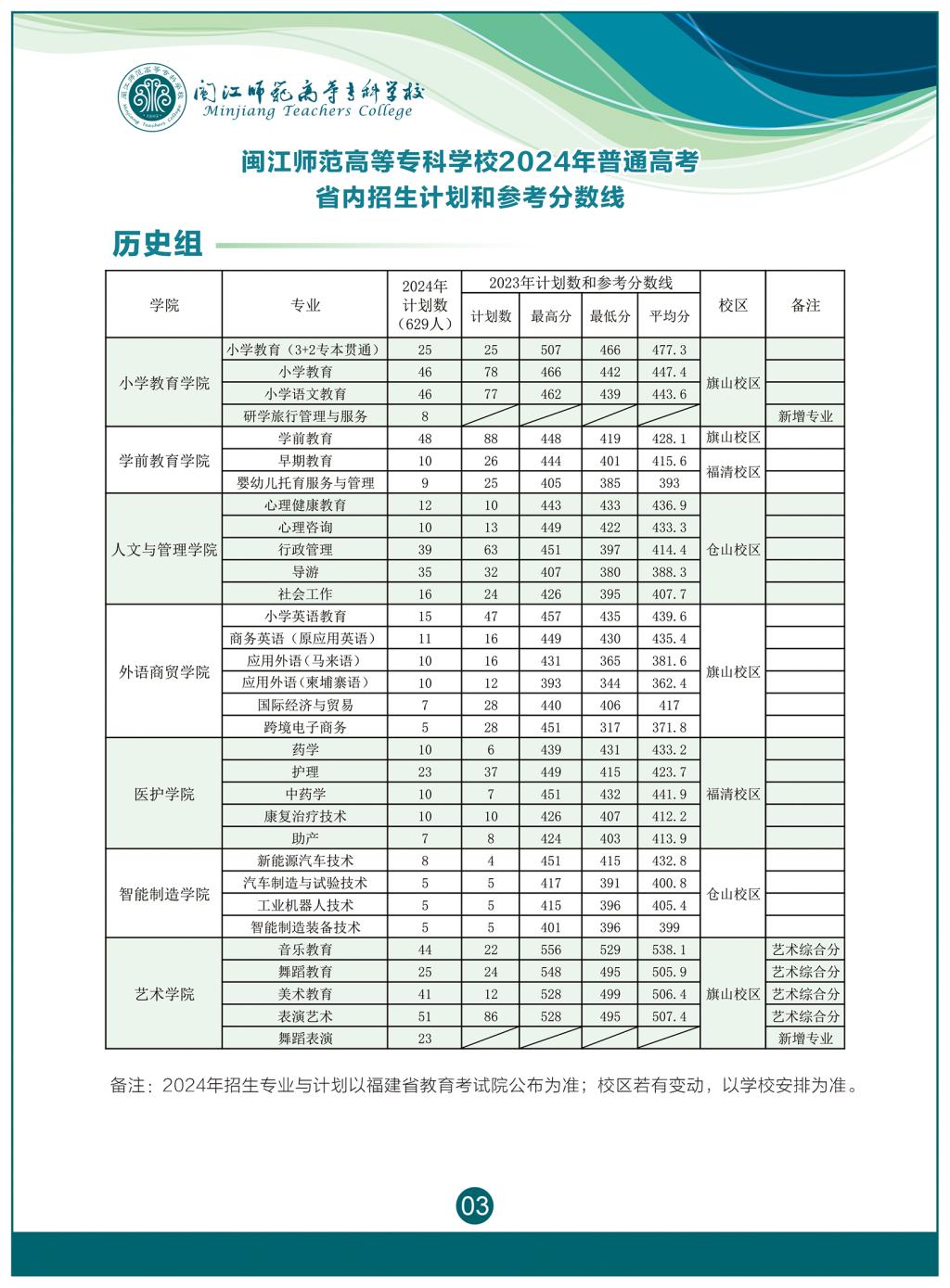 2024年闽江师范高等专科学校普通高考招生简章