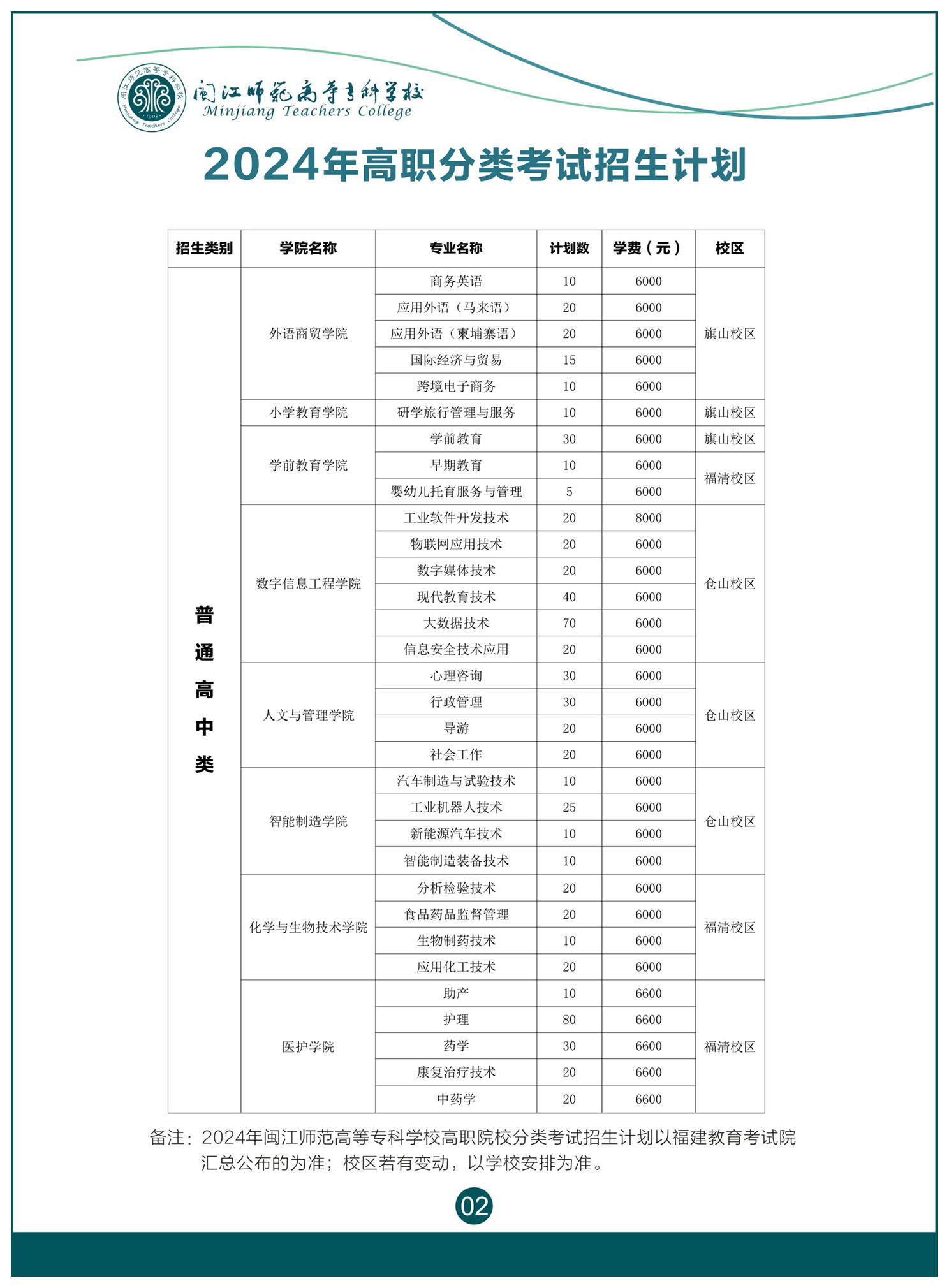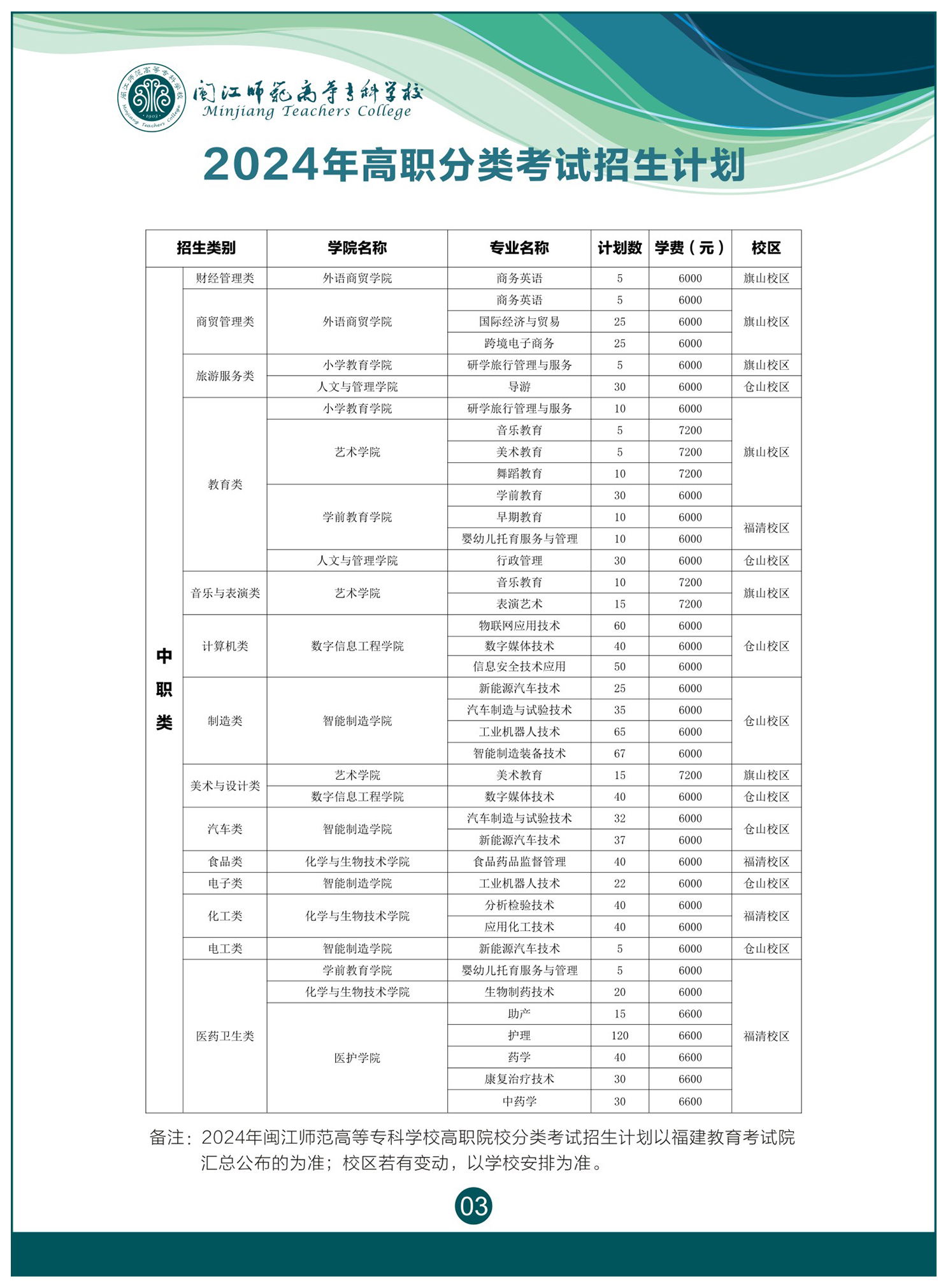 2024年闽江师范高等专科学校高职分类考试招生简章