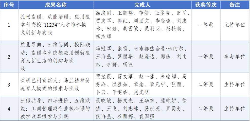 近日,自治区教育厅发布《关于2025年自治区教学成果奖(高等教育类)拟获奖项目的公示》。我校主持和参与的4项教学成果入选,包括一等奖2项、二等奖2项,取得了我校在该奖项上的历史性重大突破。