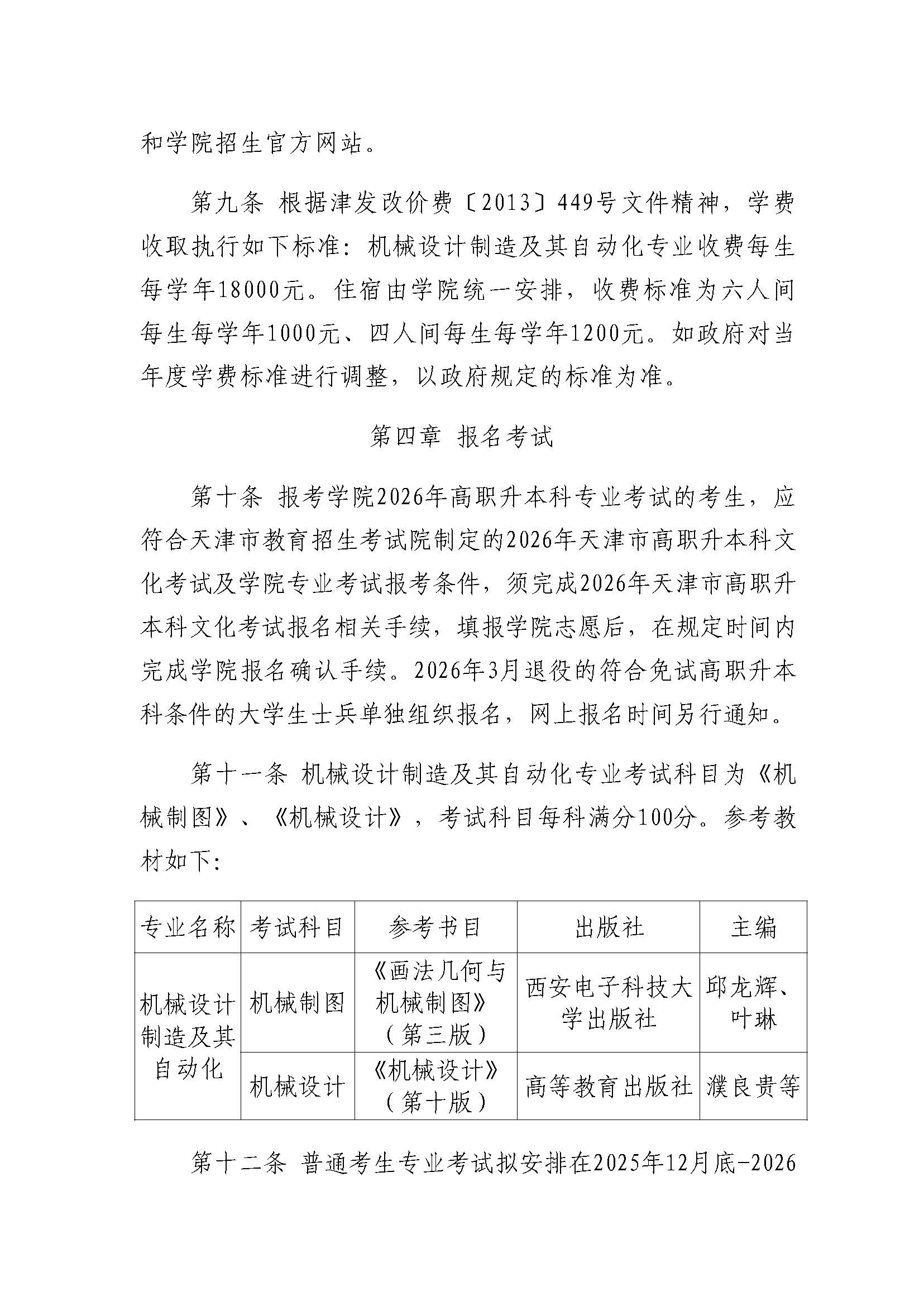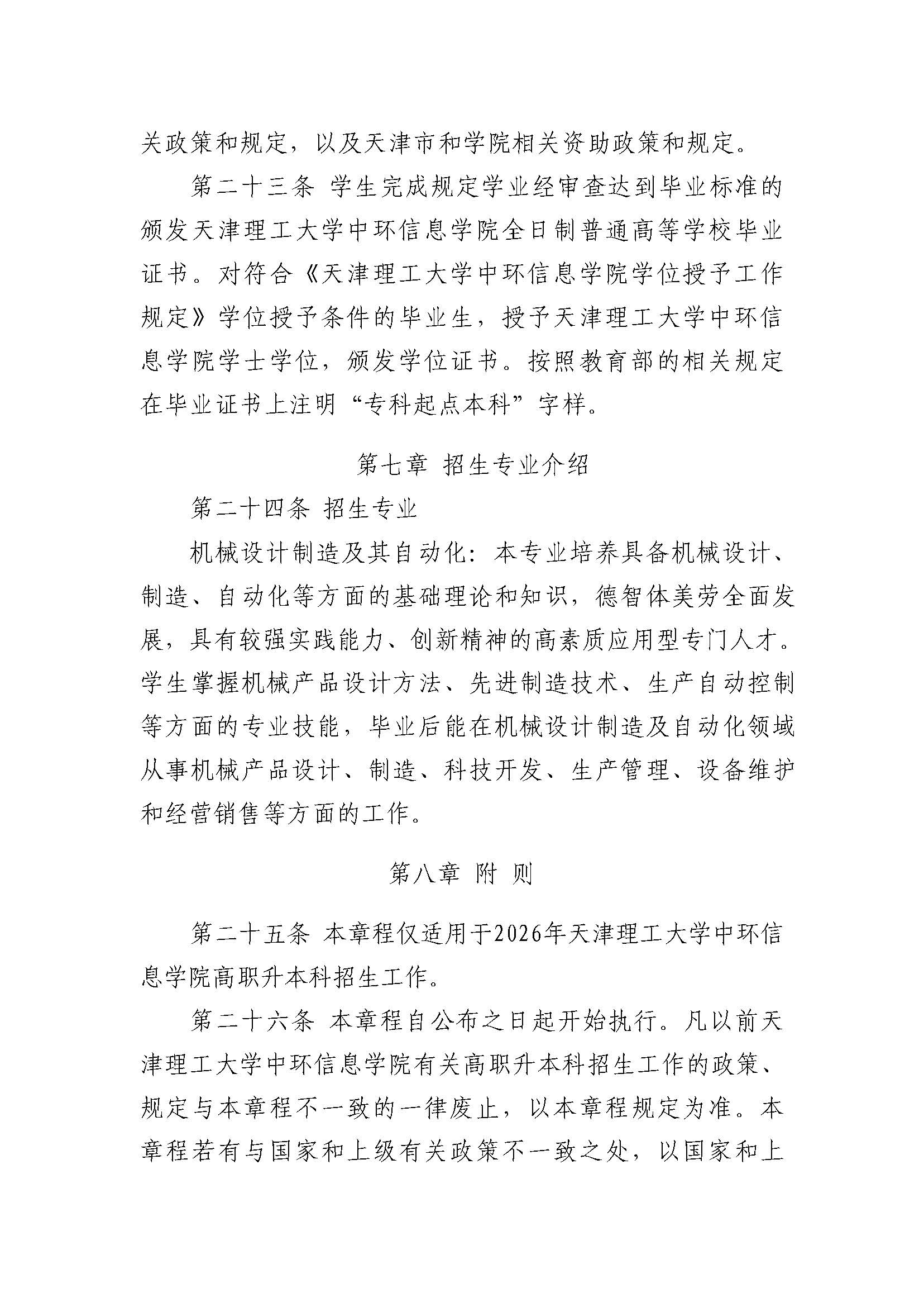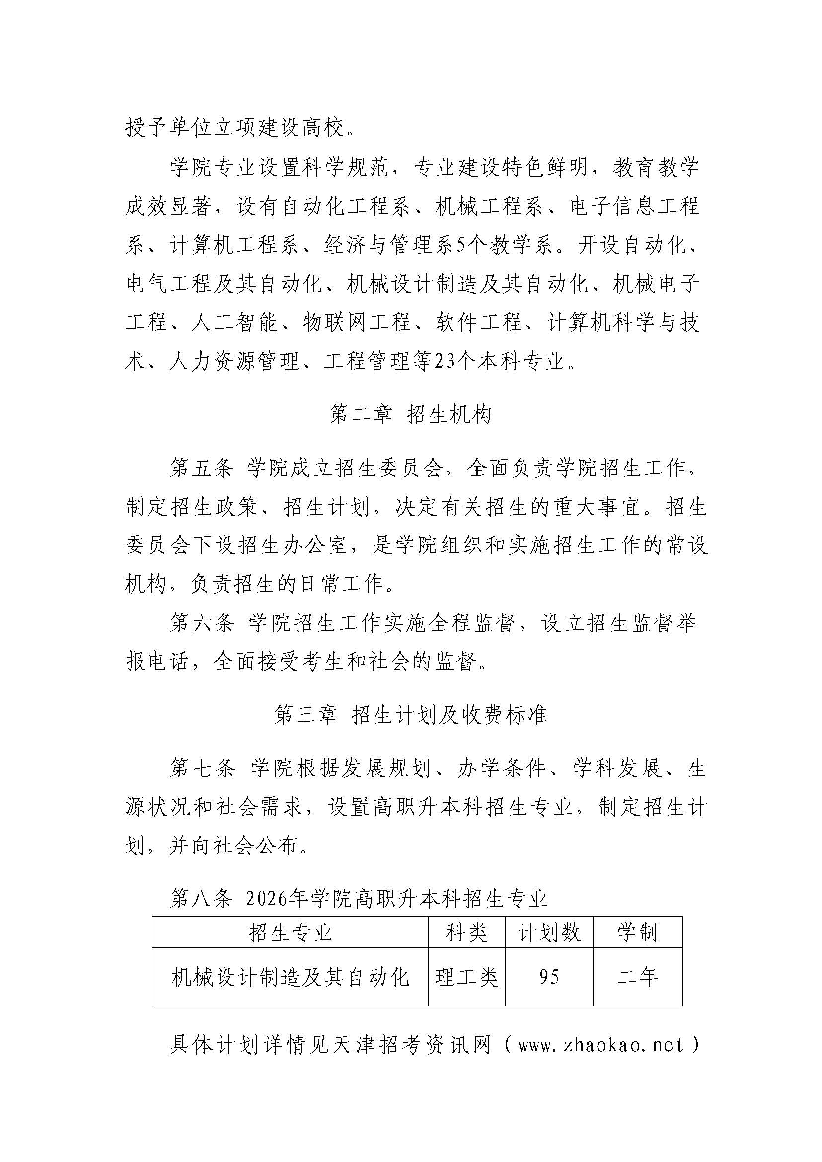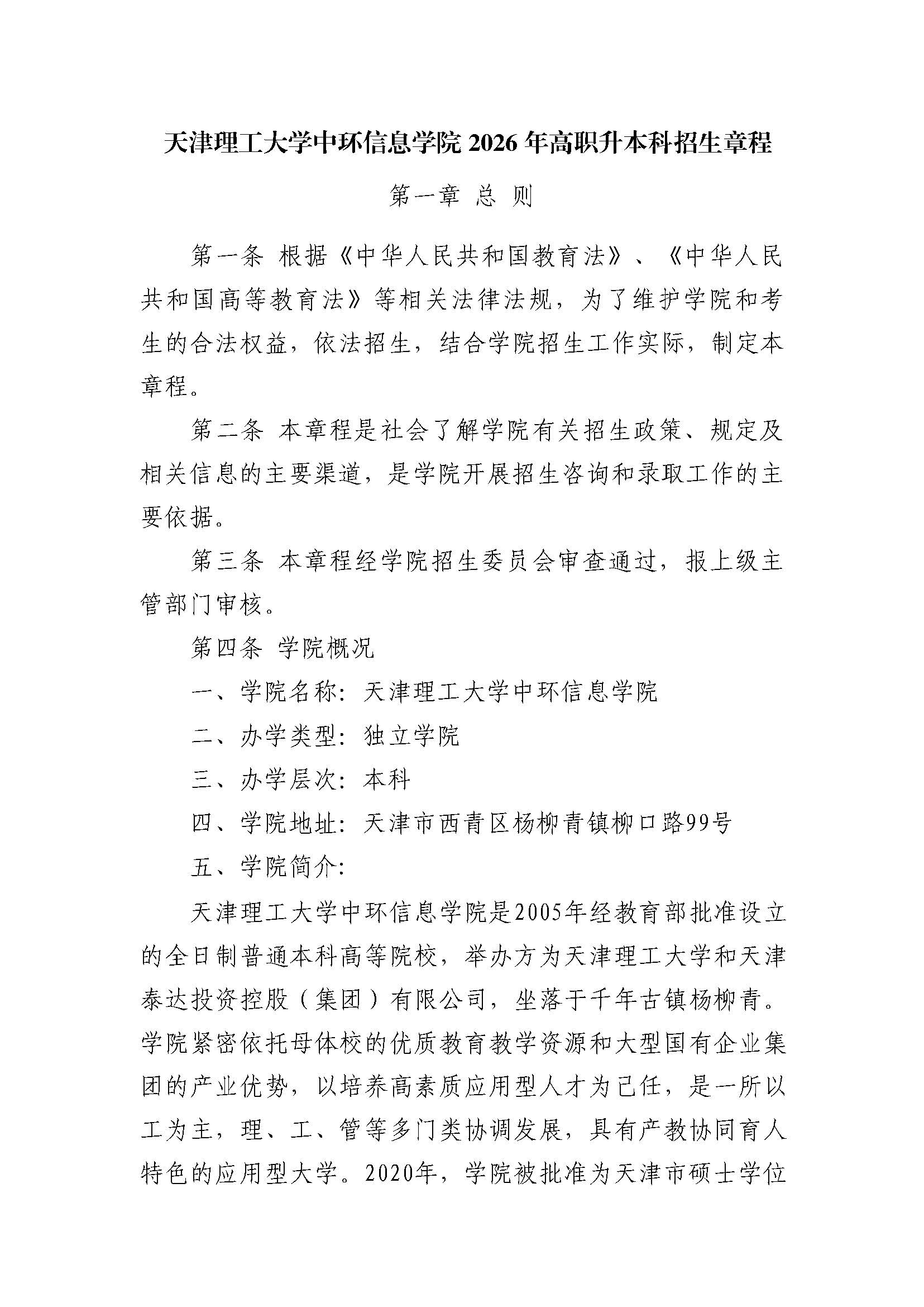 天津理工大学中环信息学院2026年高职升本科招生章程