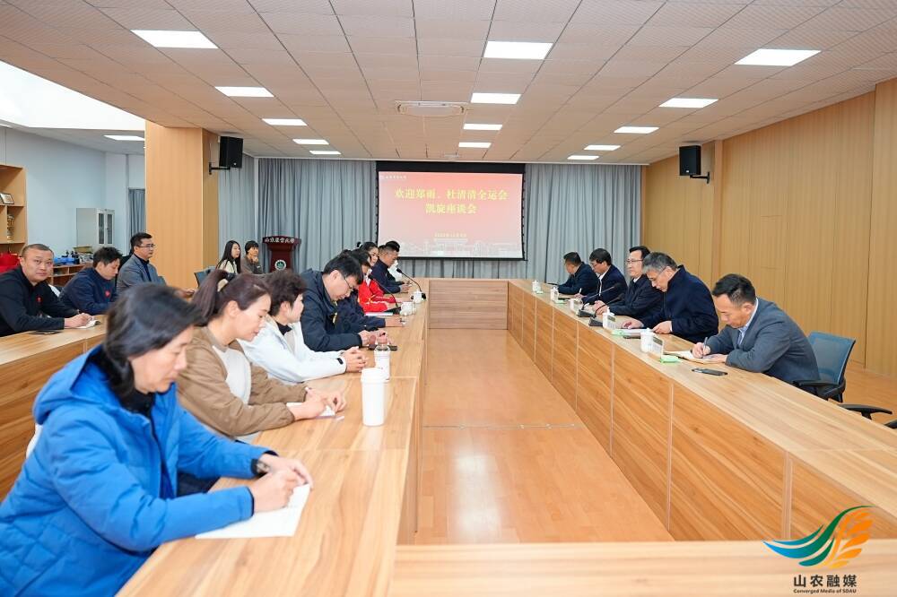 周玉玺主持座谈会时表示,长期以来,学校始终将体育育人作为“五育并举”的重要一环,大力弘扬体育精神、培育健康体魄。本届全运会赛场上,山东农大人用汗水与坚持诠释了山农人的责任担当,用体育荣光擦亮了山农体育名片,更用实际行动践行了“更快、更高、更强、更团结”的奥林匹克精神。希望学校师生以她们为榜样,将这份拼搏精神融入日常教学、运动训练与学术科研中,在培育体育人才、助力学校发展的道路上勇攀高峰、再创佳绩。
