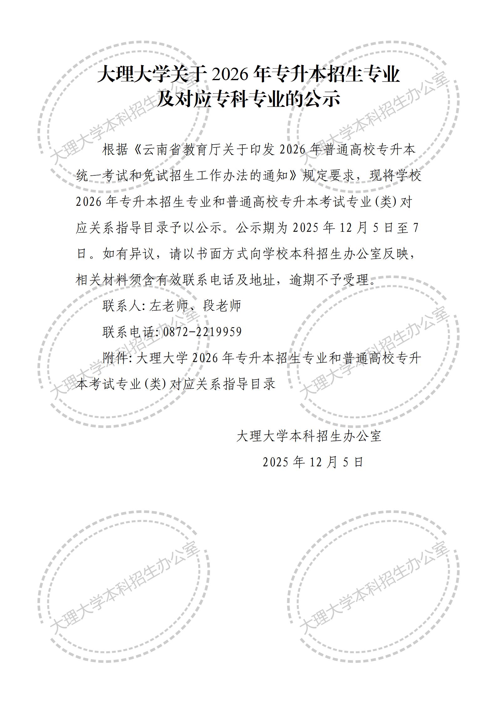 附件:大理大学2026年专升本招生专业和普通高校专升本考试专业(类)对应关系指导目录.pdf