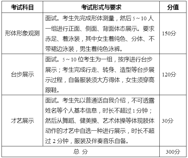 (5)评分:各评委根据考生面试表现进行现场评分。考试过程中,如评委组认为考生的表演或表现内容已有充分的打分依据,主评委可提前作出暂停、终止等指令。