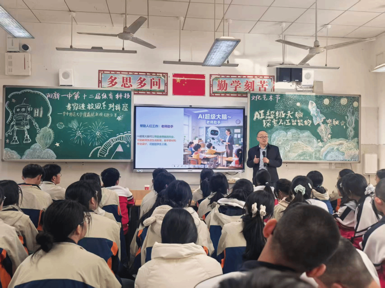 11月28日下午,我校人工智能教育学部廖盛斌教授应阳新县第一中学(以下简称“阳新一中”)邀请,在高三年级培优室开展以“AI超级大脑——探索人工智能的奥秘”为主题的科普讲座。