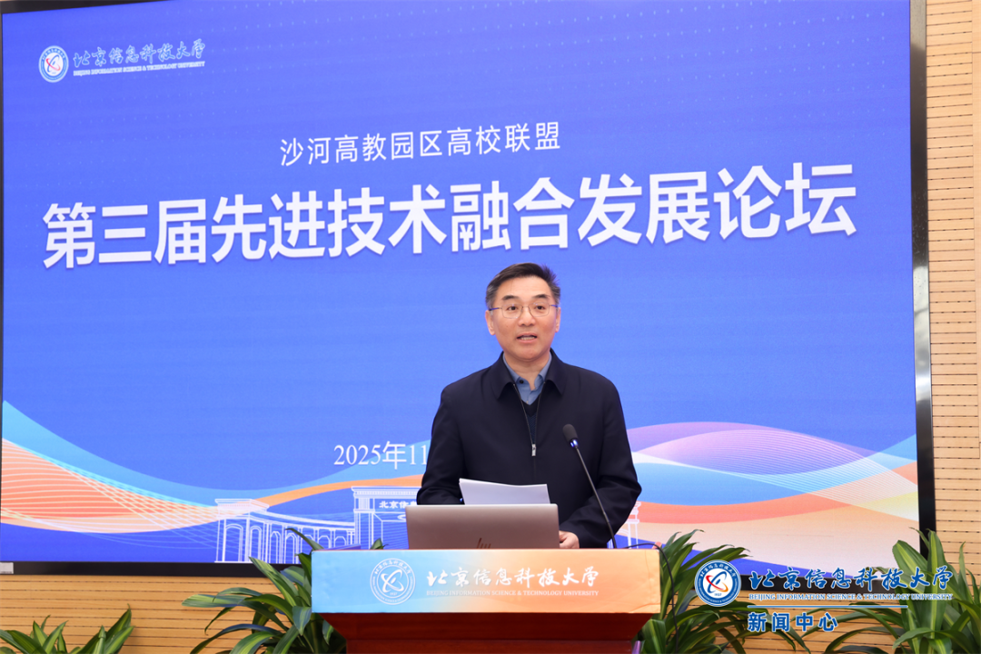 郭福代表学校对参加论坛的领导、专家学者表示欢迎和感谢。他指出,沙河高教园区高校联盟已逐步成为凝聚高校智慧、对接产业需求、推动技术转化的重要平台,为联盟高校间广泛开展校际合作,深度推进校地融合发挥了重要作用。近年来,学校紧抓发展机遇,在高质量人才培养、关键核心技术攻关与服务首都发展等方面取得了一系列积极进展,办学综合实力与社会影响力持续提升。郭福表示,作为联盟相关专业工作委员会牵头单位,学校将持续深度参与联盟建设,充分发挥自身在信息科技领域的特色和优势,积极搭建交流合作平台,促进联盟高校之间的资源共享、优势互补。同时,学校也将与行业企业开展更加紧密的合作,促进高校科研成果更好地转化为现实生产力,为区域经济社会发展和国家科技进步贡献更多的智慧和力量。