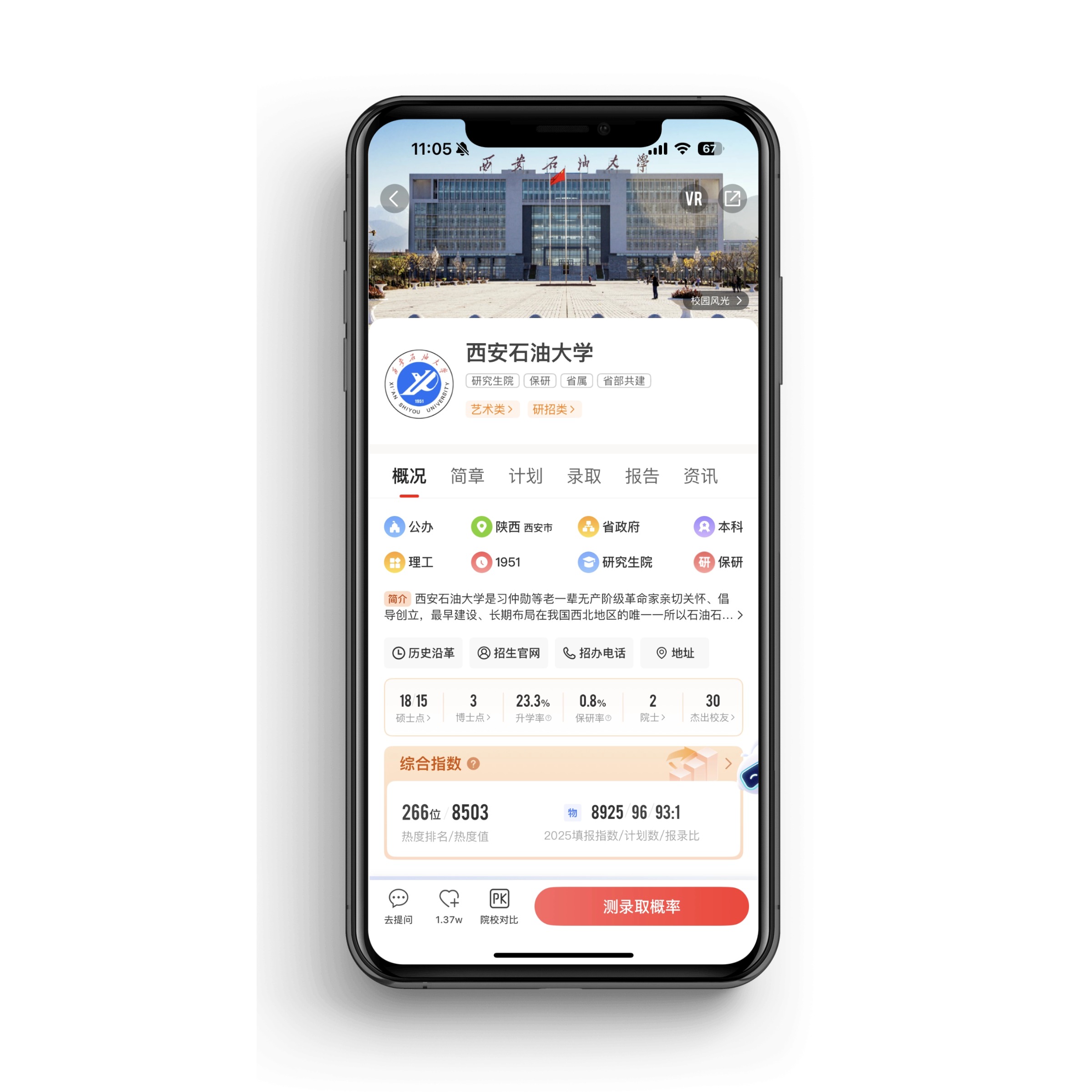 如果你还想了解更多关于西安石油大学的信息,比如不同专业的课程设置、师资力量、实习机会等,可以登录优志愿APP,点击“找大学”入口,进入大学查询页面,浏览学校的详情内容,包括专业设置、录取数据、就业前景等信息。优志愿APP为你提供全面、详细的院校专业信息,助力你做出更明智的升学选择!