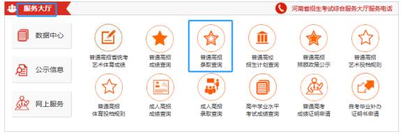 考生可登录”河南省教育考试院”官网,在”服务大厅“板块,点击”普通高招录取查询“输入个人信息,进行录取结果查询;