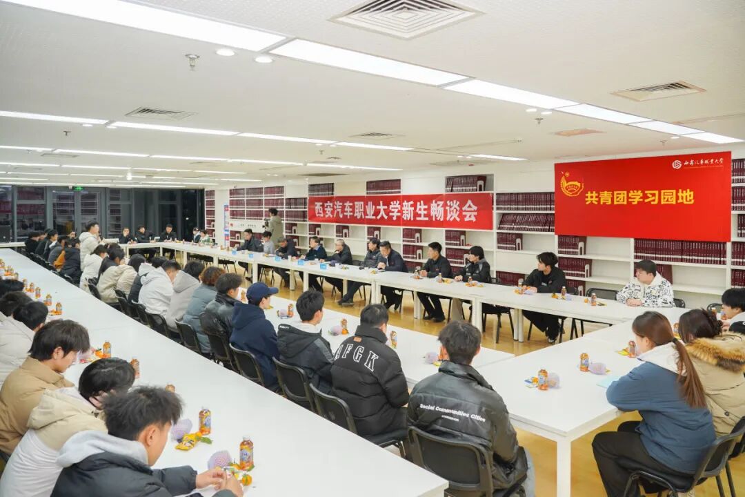 2025年12月3日18时,西安汽车职业大学在临潼校区图书馆共青团学习园地组织召开了2025级河南、安康、汉中地区新生座谈会。副校长张陵、副校长席成孝出席会议并讲话,新能源汽车学院院长李鹏伟、电子信息学院院长吴宏岐,图书馆负责人李杉,相关区域全体招生老师及60余名新生代表共同参会。会议由招生办副主任辛江主持。