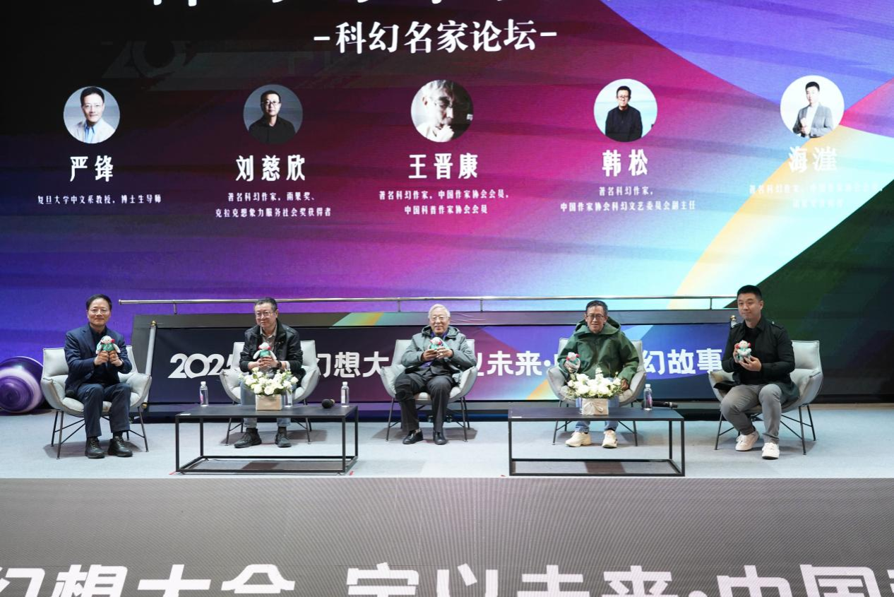在复旦大学教授严锋的主持下,刘慈欣、王晋康、韩松、海漄四位中国科幻标志性人物齐聚一堂,围绕“科幻与中国故事”展开了讨论。他们从不同角度围绕中国科幻创作密码、科幻与现实的关联、科幻与技术的边界三大核心问题展开深入探讨,分享专业观点与深度思考。