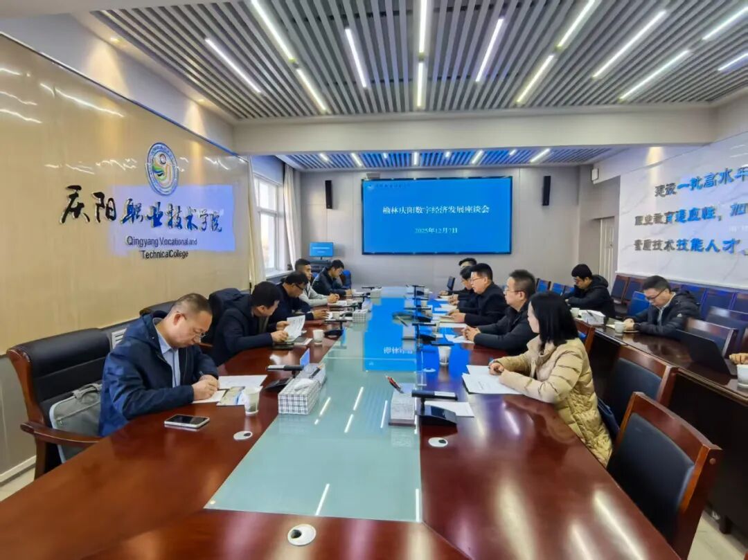 12月7日上午, 榆林市数据局局长刘斌、 榆林市大数据中心主任云波、榆林市大数据公司董事长薛凯一行莅临学院调研交流。庆阳市数据局副局长张文渊、庆阳市大数据中心副主任刘悦、庆阳云创智慧大数据有限公司副总经理罗斌应邀参加座谈会。学院党委副书记、院长胡志玉陪同调研并主持座谈会。