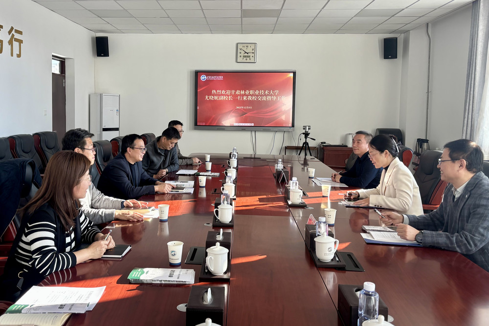 12月5日上午,甘肃林业职业技术大学党委委员、副校长尤晓妮带领招生就业处负责人一行3人来我校,就2026年高职(专科)升本科统一考试招生工作开展对接交流。我校党委委员、副校长孙永吉及招生就业处、测绘地理信息学院相关负责人参加交流活动。