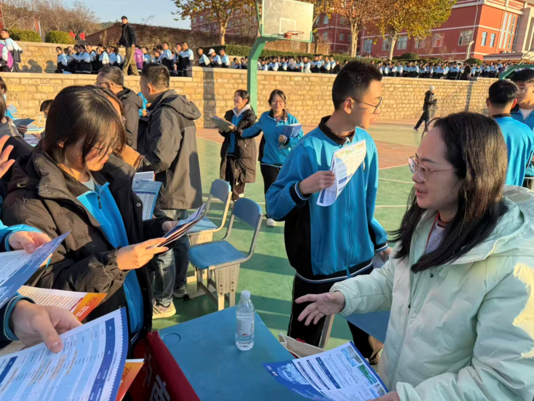本次活动中,刘一鸣老师先后走进山东省实验中学(德润校区)、山东师范大学附属中学、山东省实验中学(中心校区)、济南西城实验中学及平阴一中5所优质高中。通过设立咨询展台、发放招生宣传资料、面对面答疑等方式,结合山东“3+3”新高考模式,向各高中师生及家长详细介绍我校历史沿革、学科优势、专业特色、人才培养模式及招生政策。咨询现场氛围热烈,累计接待学生、家长千余人次,取得了良好的宣传效果。