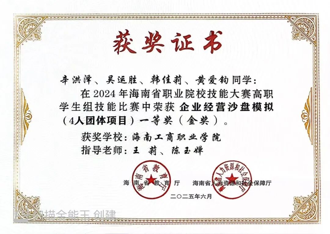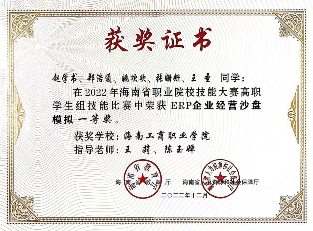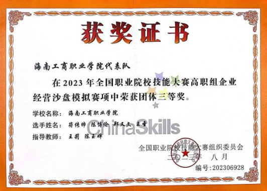 专业以赛促学、以练促能,学生在各级各类技能竞赛中屡创佳绩,先后斩获全国职业院校技能大赛高职组企业经营沙盘模拟赛项三等奖、全国高校数智化经营沙盘大赛三等奖、海南省职业院校高职学生组企业经营沙盘模拟一等奖、“科云杯” 全国大学生税务技能大赛省级二等奖等省级以上奖项 10 余项,充分彰显了人才培养的过硬质量。