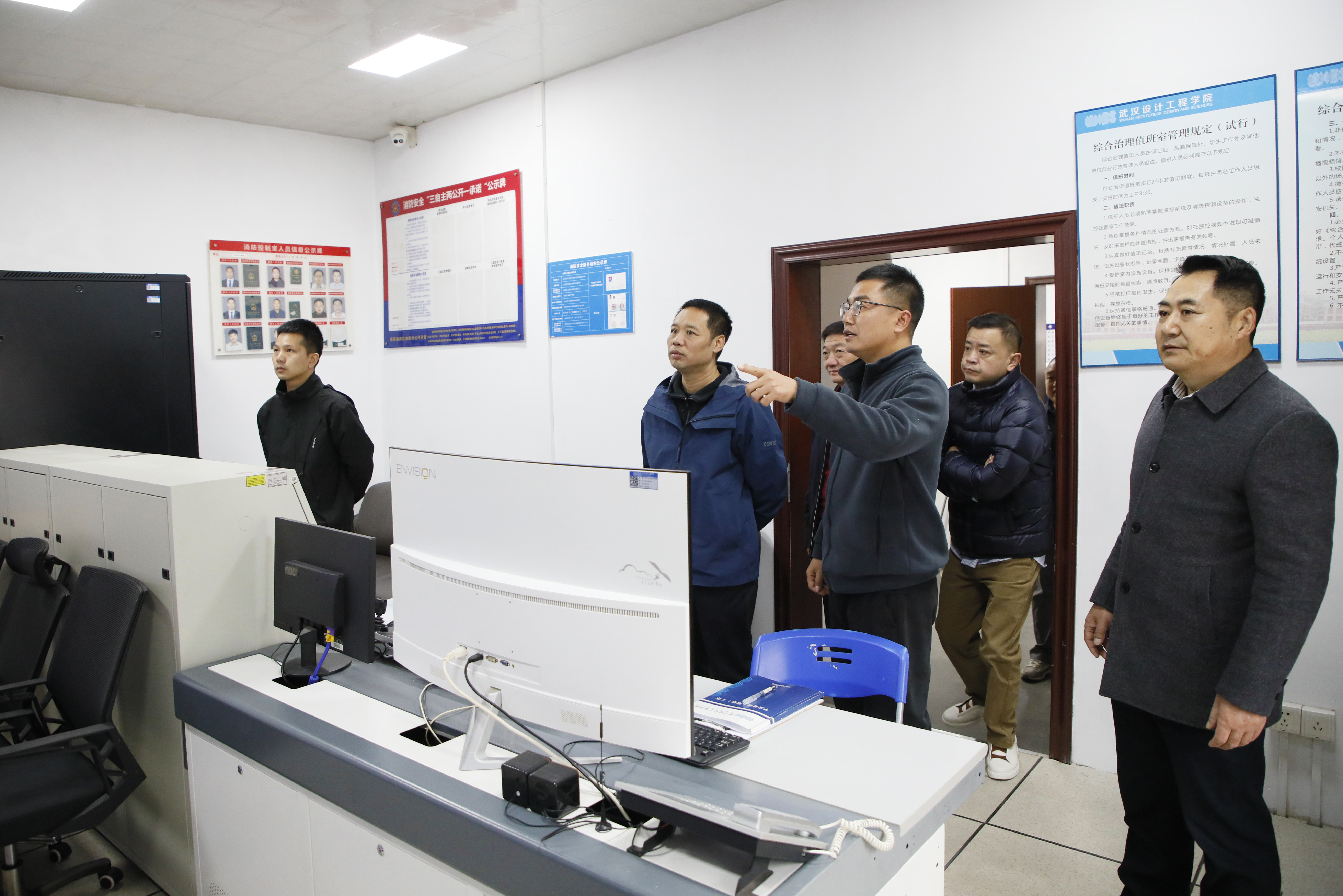 尹文韬一行实地走访了我校重点实验室、校大门安防管控区、校园安全指挥中心、二号门外人行道交通要道及学生食堂等关键部位,详细查看了安全设施配备、管理制度落实及周边环境治理情况,对具体环节的安全防范与应急处置进行指导。