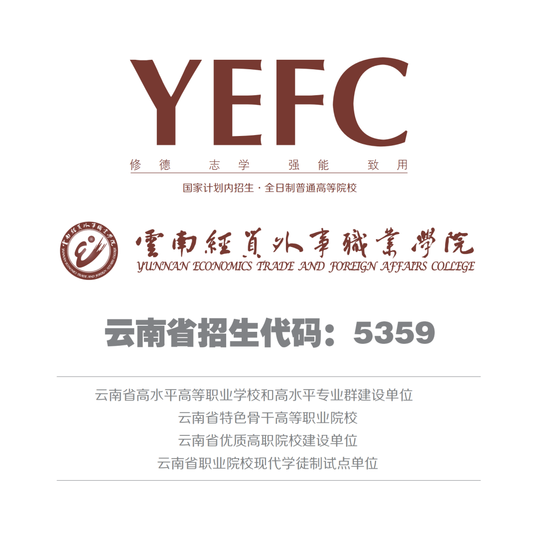 云南经贸外事职业学院始创于1998年,是经云南省人民政府批准设立的高等职业学校。学校紧紧围绕“立德树人”根本任务,认真贯彻落实党的教育方针,秉承“报国利民 以技立身”的办学愿景,致力于建设“辐射南亚东南亚的高水平职业大学”。学校以“一切为了师生的全面发展”为文化基因,着力打造“鸟语花香 欢声笑语”的人文氛围,让每一位师生在和谐、美丽的校园中成长与绽放。