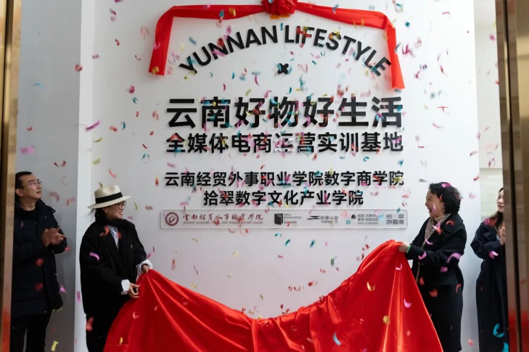 学校与拾翠品牌共建的云南好物好生活全媒体电商运营实训基地、云南经贸外事职业学院数字商学院拾翠数字文化产业学院揭牌仪式
