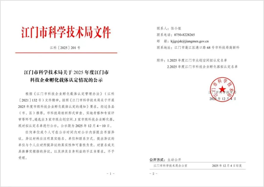 本次市级众创空间申报工作自2025年年初启动以来。学校领导高度重视,统筹部署相关工作,校长张强专程赴江门校区众创空间开展调研并对众创空间未来发展规划提出建设性意见。在学校统一领导下,创新创业学院协同各相关部门全力以赴,克服跨区域协调、材料准备、标准对接等多重挑战,历经材料初审、会议评审、现场考察等多个环节。在11月初的实地核查中,广州软件学院(江门)众创空间的建设成果与运营成效赢得了江门市科学技术局领导及认定专家组的高度评价,最终于12月成功通过市级认定。
