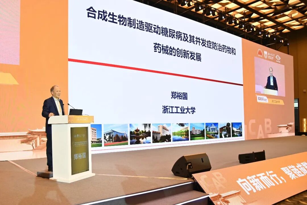 中国工程院院士、浙江工业大学郑裕国教授作《合成生物制造驱动糖尿病及其并发症防治药物和药械的创新发展》大会报告