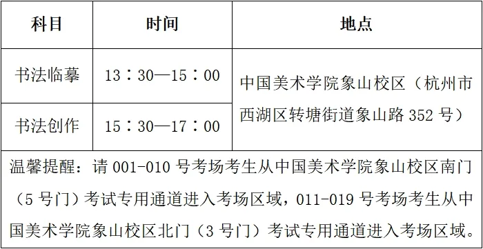 书法类省统考包括书法临摹、书法创作两个科目,均在2025年12月8日下午开考,具体考试时间和地点如下: