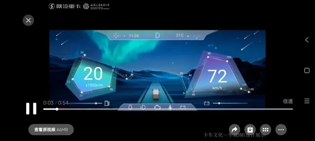 设计艺术学院打破专业壁垒,凝聚跨界合力,以“2025职业本科人才培养方案”为指导,将专业课程与企业岗位需求深度绑定,三个本科专业团队围绕“AI赋能重卡视觉体验升级”核心方向精准发力。车身涂装拉花设计推出9款国风与科技融合的渐变光影作品;重卡展示空间设计构建沉浸式“卡车文化”体验场景;车载文创产品设计落地多款实用型纪念周边;车载HMI交互设计聚焦驾驶安全与操作效率优化;重卡可视化渲染设计产出多形态传播素材,全方位满足企业多元化需求。