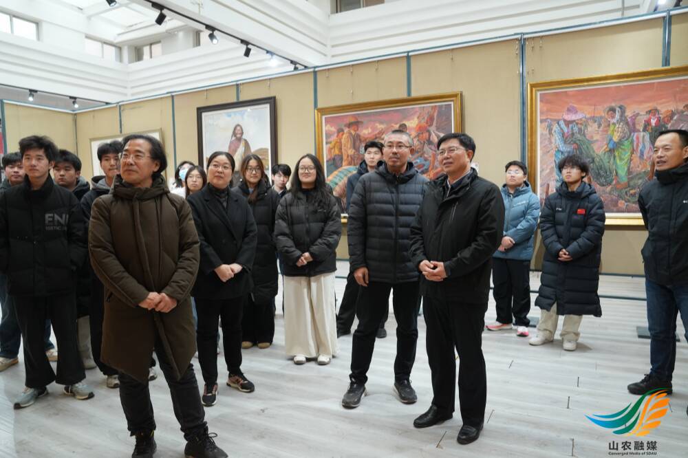 山农融媒12月16日讯12月9日-16日,学校第七届金秋艺术节教师绘画作品展在艺术学院展厅举办。期间,学校党委副书记、校长冷畅俭,党委副书记张然,党委常委、副校长李广松现场观展。