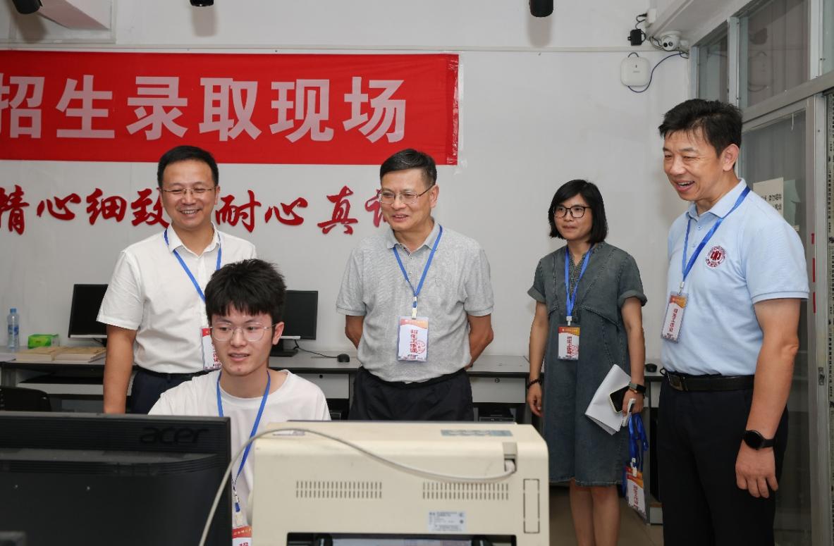 7月20日和22日,校党委书记朱小理,校长陈芬儿院士先后来到学校招生录取现场,检查指导2025年招生录取工作,看望慰问全体招生录取工作人员。校党委常委、副校长董圣鸿,相关部门负责人参加。