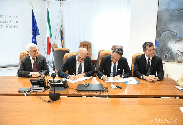 严冀钢(右二)与意大利莫利塞大学校长朱塞佩·彼得·万诺利(左二)签署合作协议