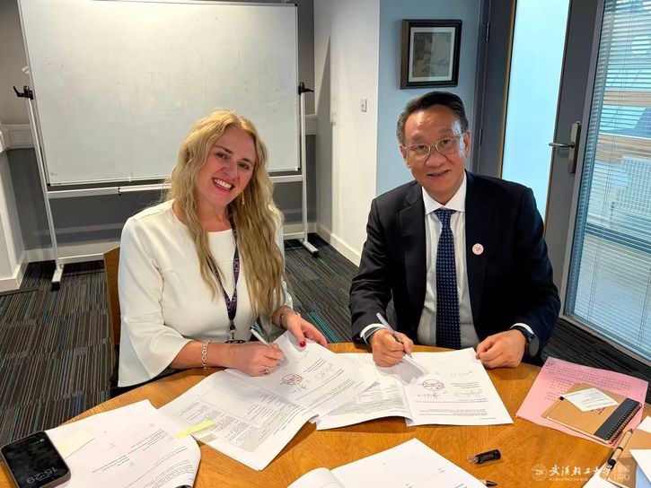 12月3日,代表团访问英国创意艺术大学,与副校长林赛·杜西教授(Prof.Lyndsay Duthie)就设计类专业建设与产学研融合展开讨论。严冀钢介绍了学校在轻工技术与品牌培育方面的成果,强调双方在推动创意设计与生活品质融合方面理念相通。随后,两校就视觉传达设计、产品设计、环境设计、网络新媒体等专业达成本硕联合培养意向,并签署《武汉轻工大学与英国创意艺术大学合作协议》。