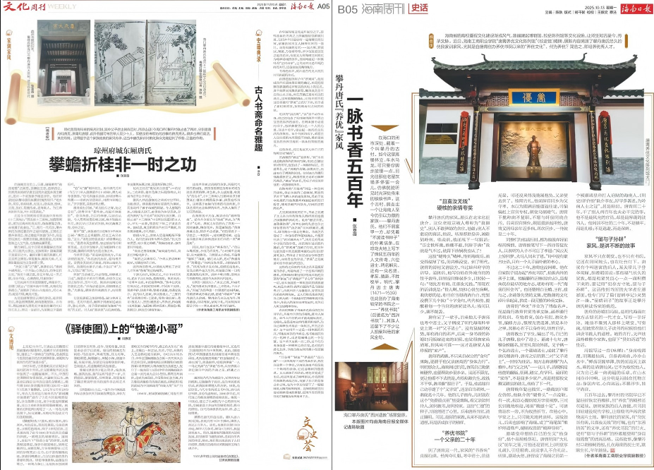 同时,在《海南日报》发表地域文化、家风建设类文章近百篇,持续讲好海南清廉故事、家风故事;多篇文章聚焦“养优文化与思政教育融合”“自贸港背景下地域文化资源活化”等议题,推动理论与实践双向赋能。