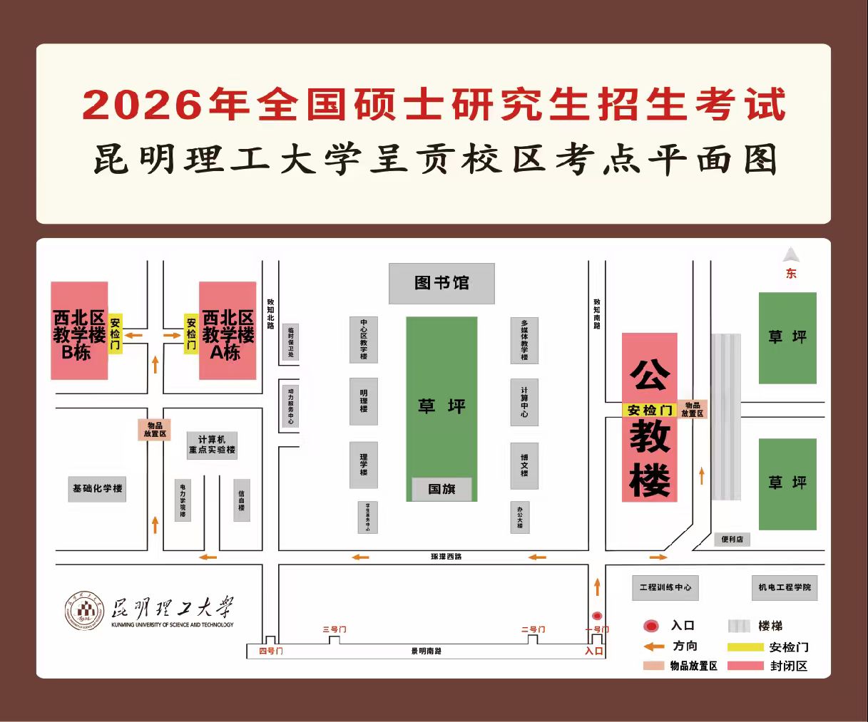 2026年全国硕士研究生招生考试将于12月20日-21日进行,本次考试属国家教育考试。请参加考试的各位考生坚守“诚信守法光荣、违规舞弊可耻”的理念,严格遵守考试纪律,知法、守法,诚信考试,拒绝作弊。为确保考试平稳顺利进行,昆明理工大学呈贡校区考点就考生入场等事宜公告如下。