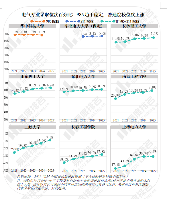 具体来看,华科、华电等985、211院校较为平稳,甚至有小幅下滑。而