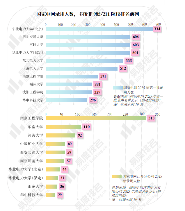 这些院校有一个共同点:端上电力系统“铁饭碗”的几率比其他院校高出许多。根据国家电网及江苏分公司2025年录用名单公示