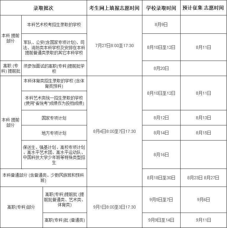海南:2020年填报志愿和录取时间