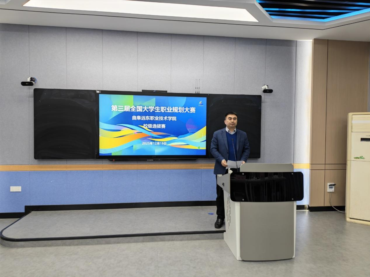 为深入贯彻党中央、国务院关于促进高校毕业生就业创业的决策部署,落实《中共中央办公厅国务院办公厅关于加快构建普通高等学校毕业生高质量就业服务体系的意见》精神,依据《教育部关于举办第三届全国大学生职业规划大赛的通知》的相关要求,12月19日,第三届全国大学生职业规划大赛曲阜远东职业技术学院校级选拔赛在高铁校区隆重举行。校党委委员、副校长尹德亮出席并致辞,招生就业处、学生工作处、公共基础教学部、各二级学院相关负责人参加了本次活动。