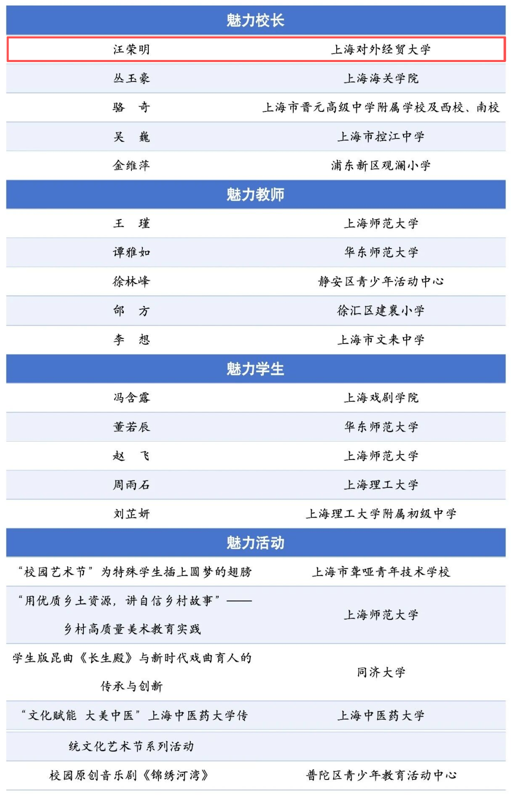 上海对外经贸大学校长汪荣明荣获“魅力校长”奖项!