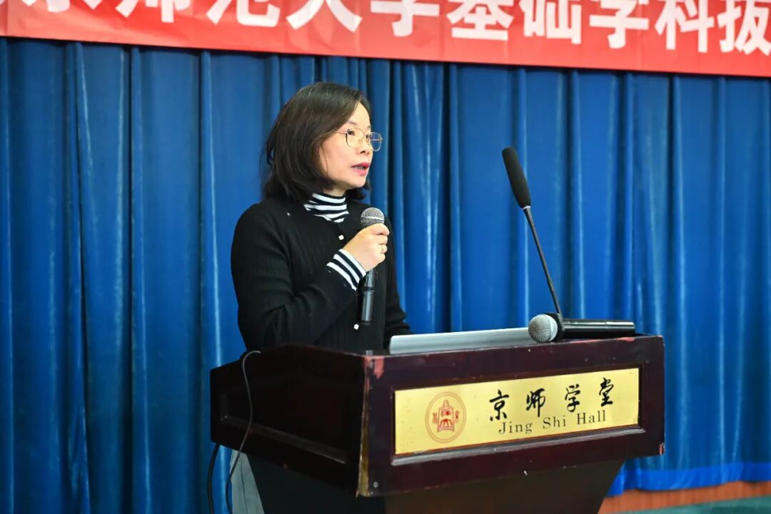 在开班仪式上,北京师范大学物理与天文学院彭婧教授致欢迎词。她指出,本次研修围绕拔尖创新人才的选拔与培养展开,对于加强大学与中学教育的衔接、协同推动拔尖创新人才成长具有重要现实意义。