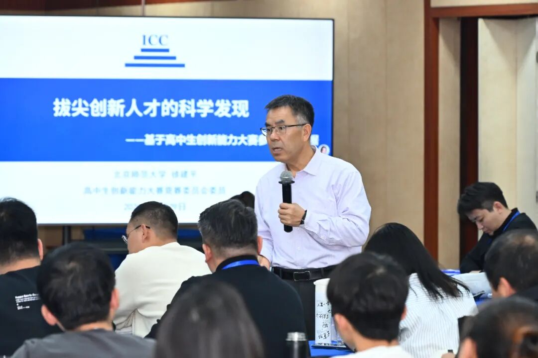 北京师范大学心理学部徐建平副教授,结合大赛参赛学生数据,系统阐述了科学识别与选拔拔尖创新人才的方法路径。他对大赛育人成效与赛事科学性的深入剖析,引发了参赛校负责人的广泛共鸣与热烈讨论。