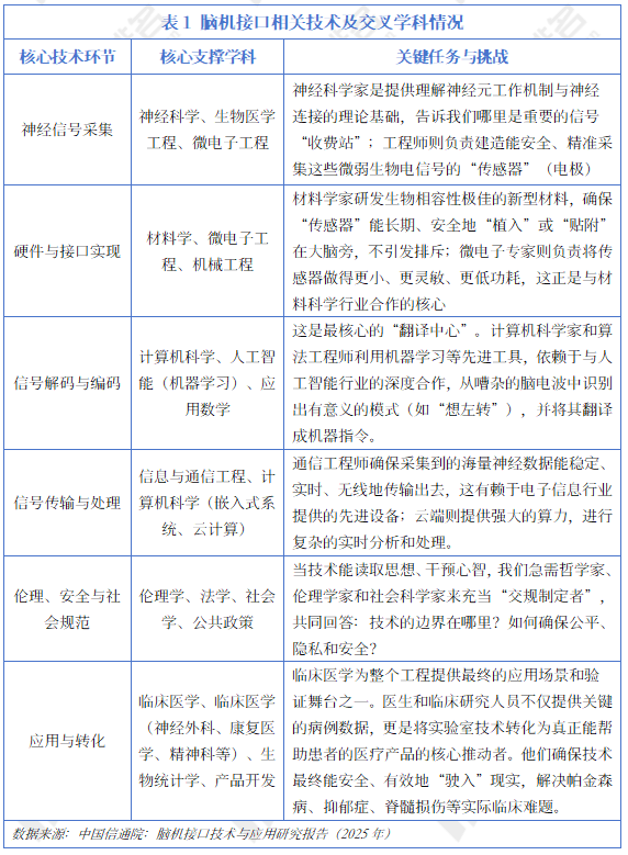 正因为脑机接口是在构建一条与大脑直接沟通的“高速公路”,这条路的建设,就绝非单一学科能够完成,这背后都是一个庞大的交叉学科网络在支撑。作为一项史诗级的超级工程,需要多学科领域的顶尖专家组成施工队,精密协作,才能让“脑”与“机”的对话成为可能。
